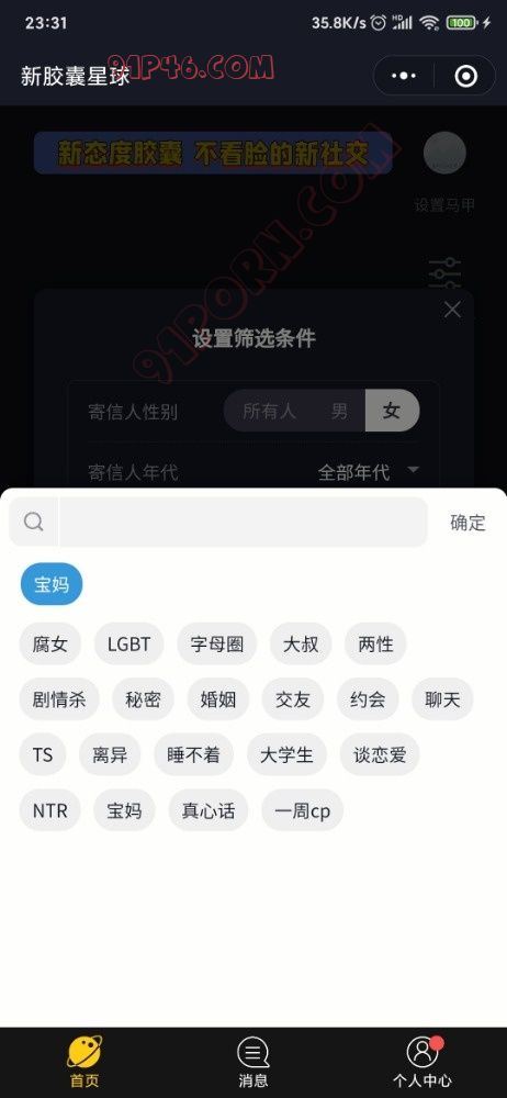 首先我没有打广告,去年都在91看到过其他老哥说这个wx小程序,字母圈的人确实多。识别登录以后点击看信,选择圈子。看不了就退出过一会再进去。你们好好研究研究怎么玩 .